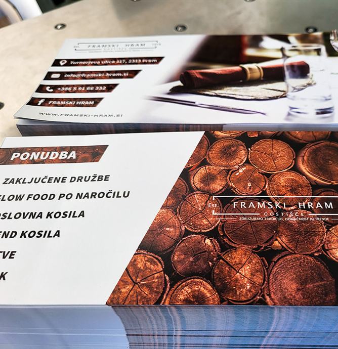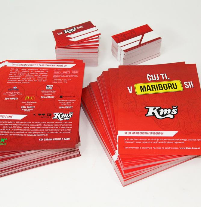 Osnovna ponudba: 10 letakov formata A5, 130g premazni mat papir, enostranski barvni tisk: 33 €