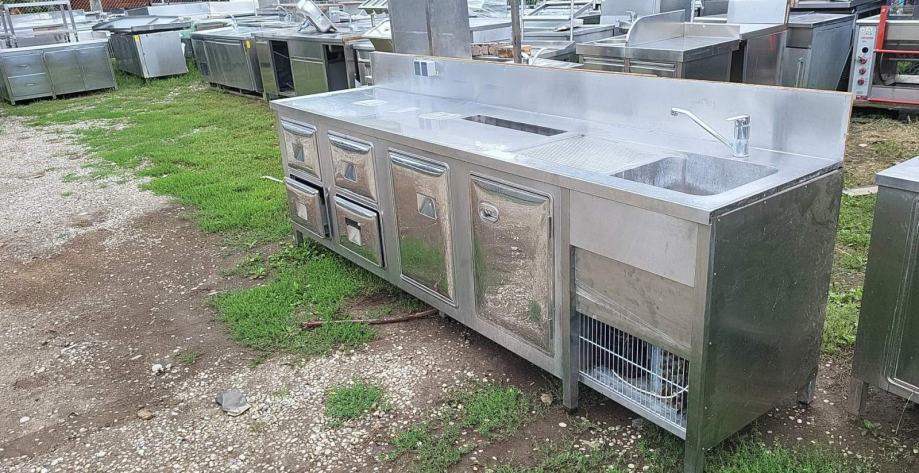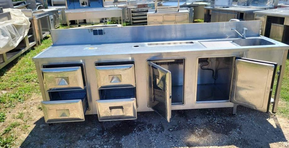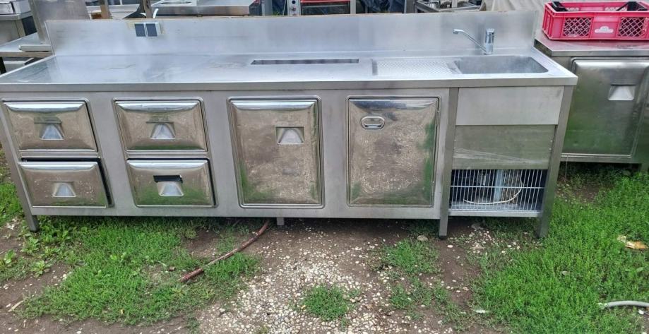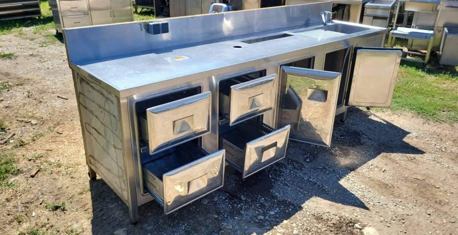 PRODAMO … HLADILNI TOČILNI PULT - ŠANK Z KORITOM , 2x HLADILNA VRATA IN 4x HLADILNI PREDALI - INOX … ODLIČNO OHRANJEN IN BREZHIBNO DELUJOČ ( PRAVKAR PREVENTIVNO POSERVISIRAN ) ... INTEGRIRAN KOMPRESOR – PRIKLOP 220 V ... MERE SO : 290x70x90 cm … GARANCIJA ... MOŽNOST DOSTAVE …POGLEJTE ŠE OSTALE NAŠE OGLASE ... TEL : 070733880