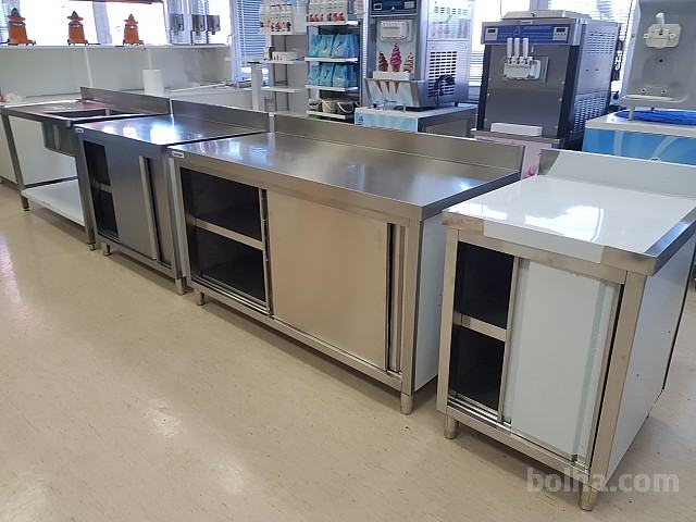 Pulti imajo zavihek + 10 cm proti zatekanj,so zaprt z drsnimi vratci.$ x noge nastavljive inox