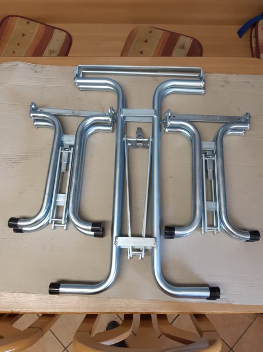 Narejena so iz okroglih cevi fi 3/4", so močna in robustna, za večkratno uporabo. Ko se zložijo se spravijo na debelino cca 6cm oz. odvisno od debeline zgornje plošče.