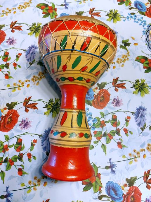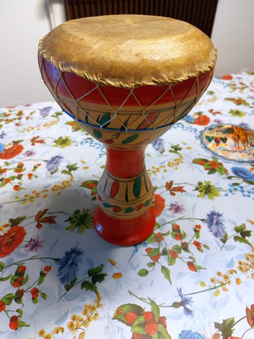 Lep afriški čašasti boben, poreklo Tunis, uporaben kot dekoracija ali glasbilo. Nikoli rabljen. Ročno izdelan unikat.
