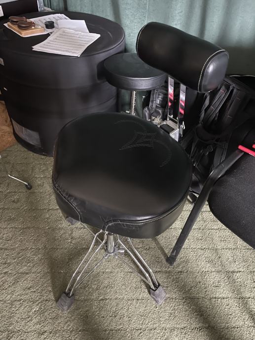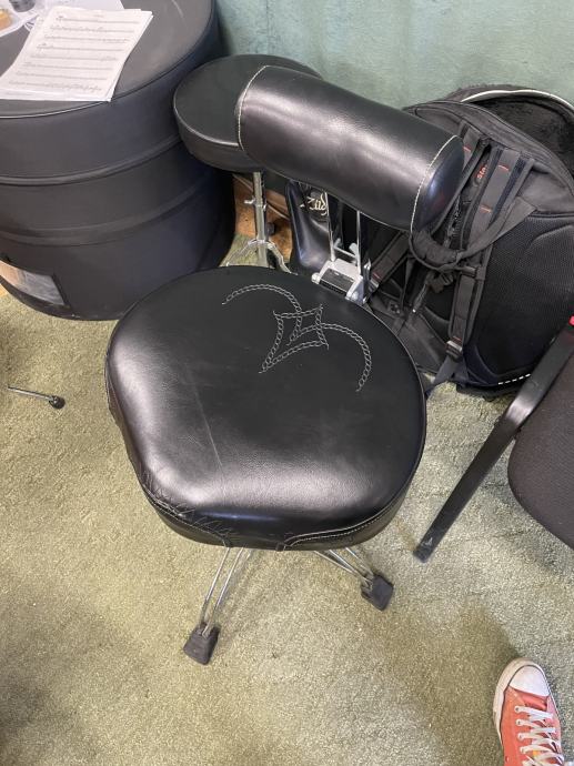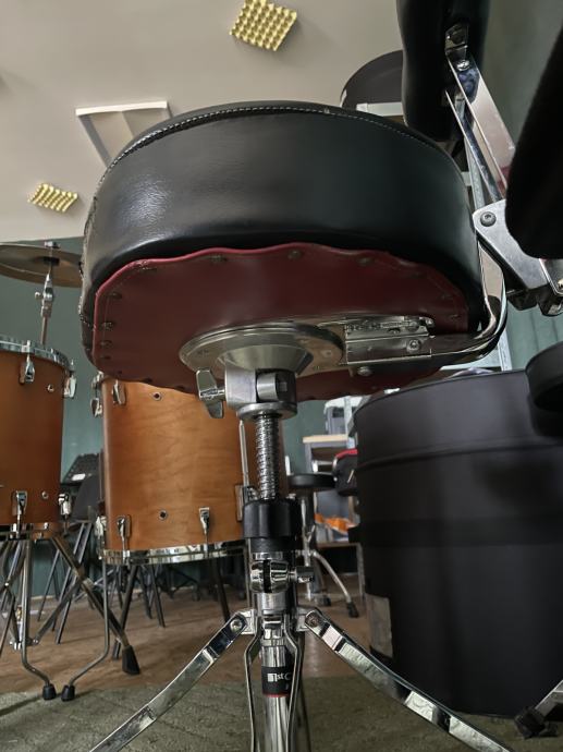 Prodajam rabljen bobnarski stol. Stol je popravljen pri čevljarju in popolnoma fukncionalen. Cena je primerna obrabi. Prodajam celoten komplet, z naslonjalom vred. Prodajam za pol cene novega stola.