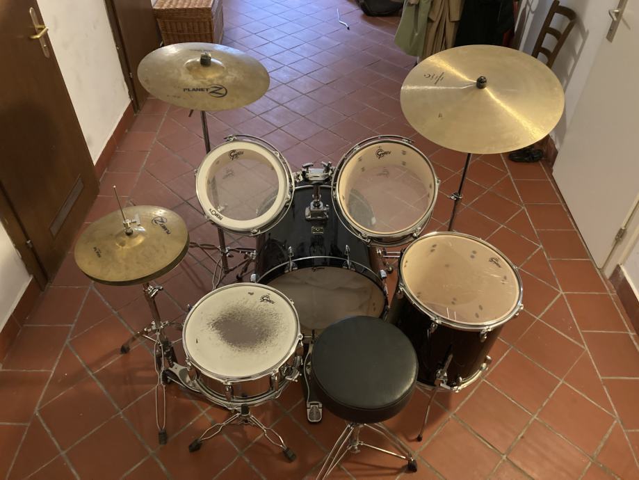 Prodam komplet bobnov Gretsch Blackhawk v črni barvi, star približno 15 let, lepo ohranjen in pripravljen za igranje. Komplet vključuje 5 bobnov in vsa stojala, skupaj z dvema činelama Planet Z (Crash/Ride 18" in Hi-Hat Top 14").