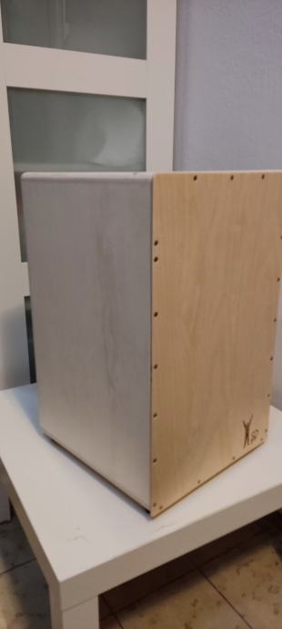 Ugodno prodam nov, odličen cajon SDRL , dimenzije 30x30x48 cm iz topola ter breze. Ima odlično odzivnost mrežice že pri rahlem dotiku. Znotraj je premično vodilo z mrežico (lahko se jo tudi v hipu odstrani), tako da se poljubno nastavi glede na željeno stopnjo treslajev. V zgornjem levem in desnem kotu pa možnost za drugačen zvok -efekt, zaradi posebne postavitve vijakov.