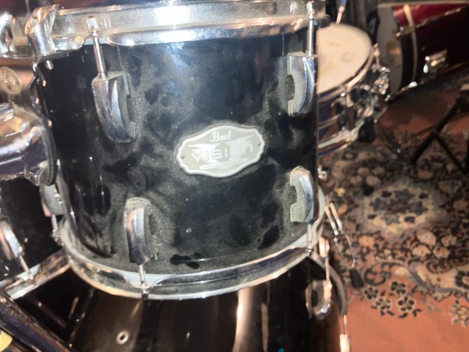 snare in stojalo za snare. Dodam se ride in hi hat cinelo. Super bobni… razen kake praske so brezhibni.