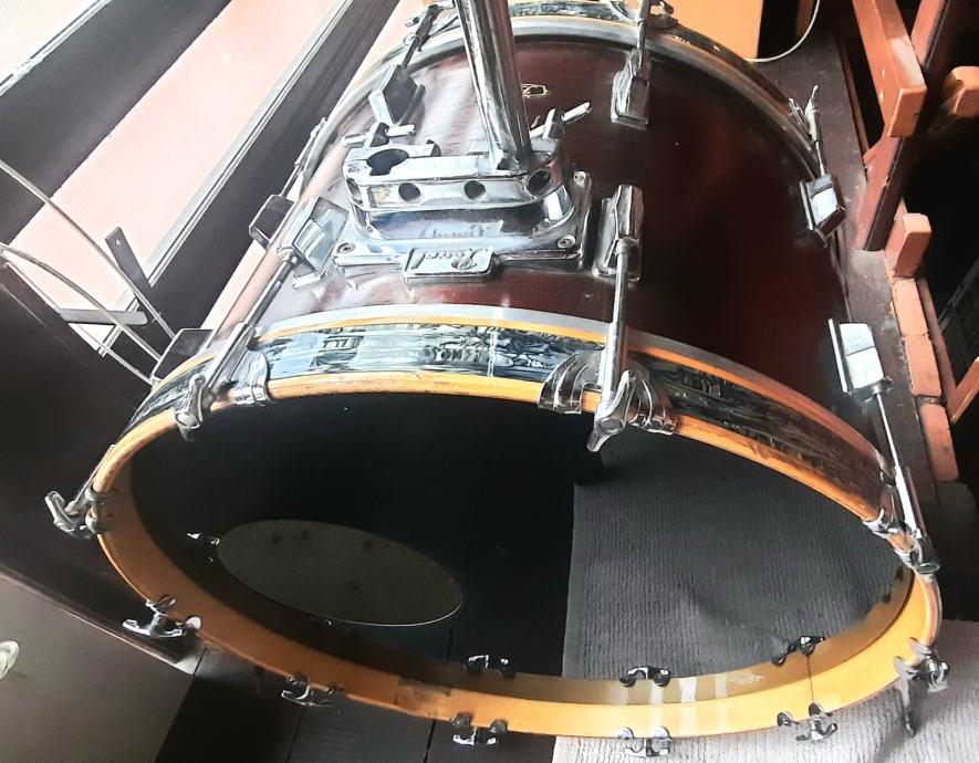 - bas boben 22 x 14, les mahagonij vintage iz 70-ih, 10 lugs, walnut finish. Odlično ohranjen, minimalne sledi uporabe.