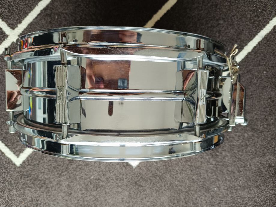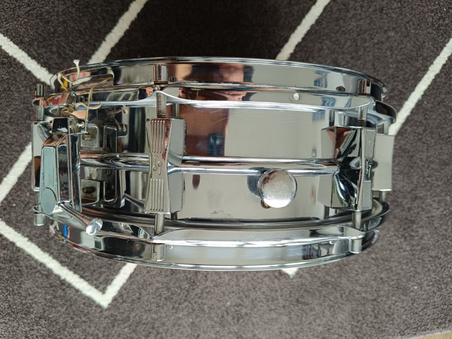 Prodam Sonorjev Vintage snare boben v dimenziji 14x5. Gre za izvrstno zadevico iz 70ih let. Školjka je brez šiva (seamless shell), ne gre pa klasičen kovinski snare, ampak za feromanganovo zlitino (železo z dodatkom mangana).