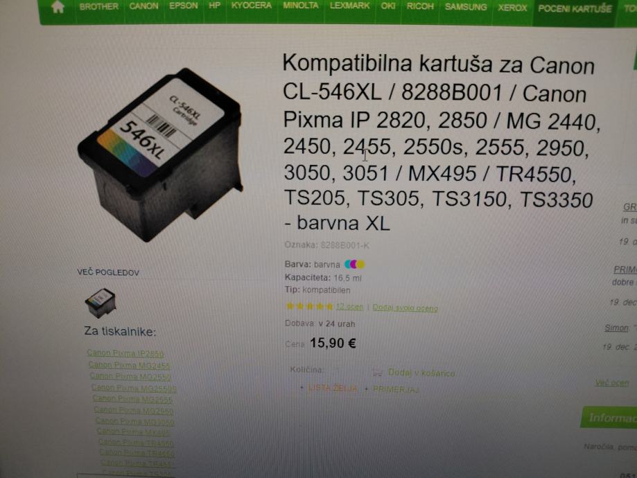 Kartuša je nova,še zapakirana, kompatibilna za različne tiskalnike - glej sliko 2.
