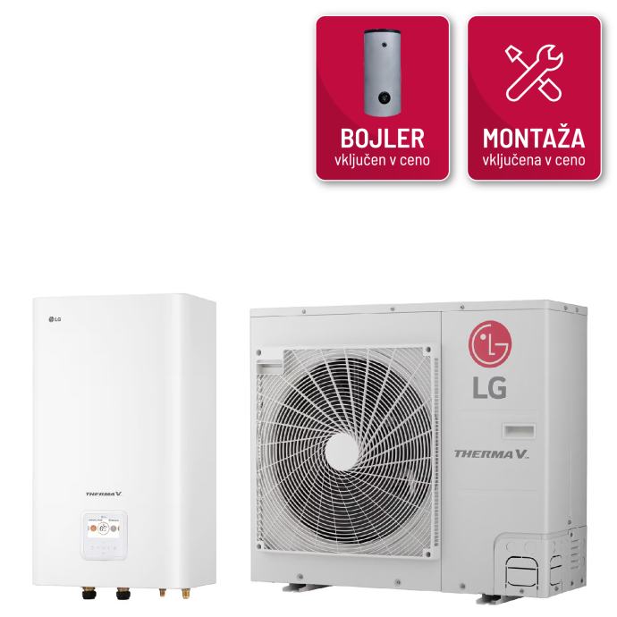 Toplotna črpalka LG Therma V R32 Split je odlična izbira za varčno in učinkovito ogrevanje. Zasnovana je za novo gradnje kot tudi prenove saj izhodna temperatura sega vse do 65°C. Kompaktna in moderna notranja in zunanja enota omogočata fleksibilnost pri namestitvi. Ena izmed najbolj impresivnih prednosti toplotnih črpalk LG je ohranjanje 100% kapacitete pri zunanji temperaturi do -7°C pri izhodni vodi za talno ogrevanje (35°C) kot tudi za radiatorje (50°C). Delujejo pa vse do -25°C. Toplotne črpalke so izredno tihe, kajti 5 metrov od enote delujejo le pri impresivnih 35 dB. Obe zgornji funkciji ji omogoča lasten razvoj kompresorja, ki velja za enega najbolj učinkovitih na trgu. K napravi je priložen žični upravljalnik kateri lahko služi tudi kot upravljalec ali sobni termostat. Reguliranje toplotne črpalke je možno preko samodejnega načina, upoštevajoč zunanjo temperaturo kot tudi preko sobne temperature oziroma kombinacije sobne temperature in zunanje temperature. Toplotno črpalko LG lahko upravljate tudi preko WIFI modula, aplikacije ThinQ, katerega je potrebno dokupit. Zamenjajte ali nadgradite ogrevalni sistem z to inovativno in tehnološko napredno toplotno črpalko zrak-voda R32 Split LG in z 3 letno garancijo uživajte v brez-skrbnem ogrevanju.