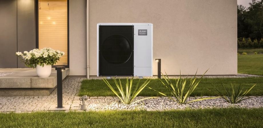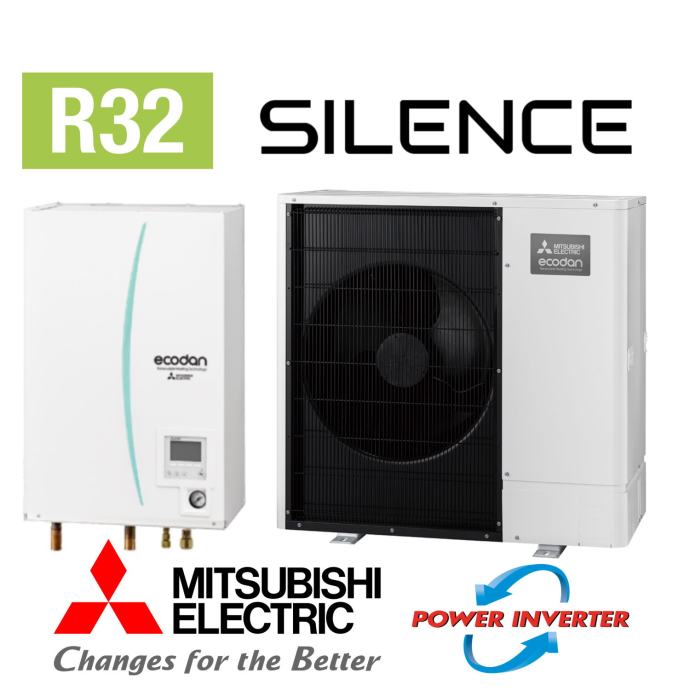 Komplet toplotne črpalke zrak-voda Mitsubishi za ogrevanje 14 kW. Nove zunanje enote deljenih toplotnih črpalk zrak-voda polno izkoriščajo prednosti hladilnega sredstva R32 in se po energetski učinkovitosti uvrščajo v najvišji razred A+++ pri temperaturi ogrevalne vode 35°C.