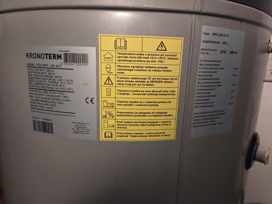 Prodam tč za sanitarno Kronoterm tčvz 321, 300L z okvaro kompresorja