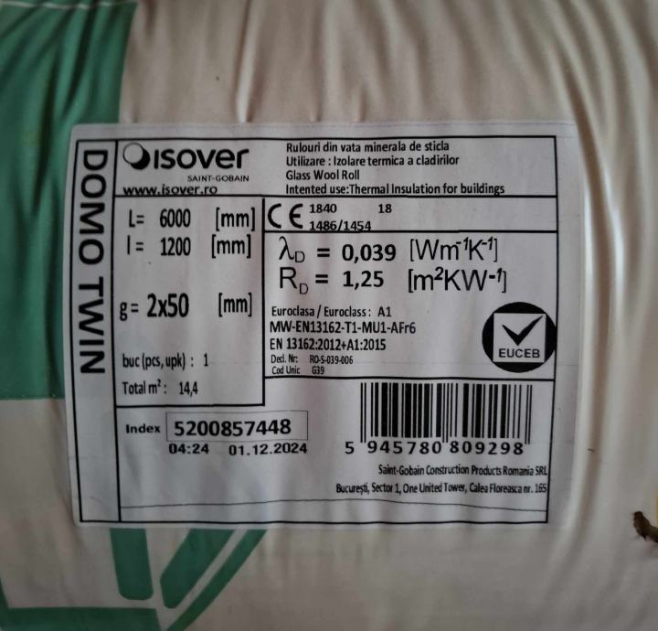 Prodam izolacijsko mineralno volno Isover, debeline 10 cm, lahko se jo tudi razsloji na 2 x 5 cm. Izolacija pri montaži ne pika in ne srbi. Je ostanek od gradnje in je novo.