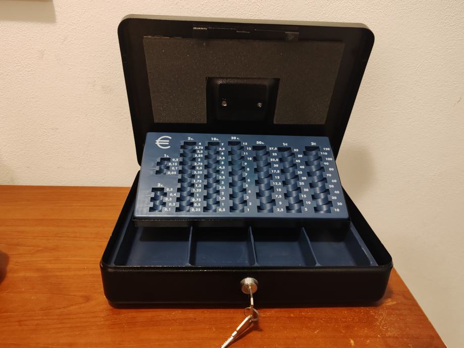 Prodam prenosno blagajna za kovance in bankovce , širina je 27cm, dolžina je 37cm. Prodam zaradi neuporabe.