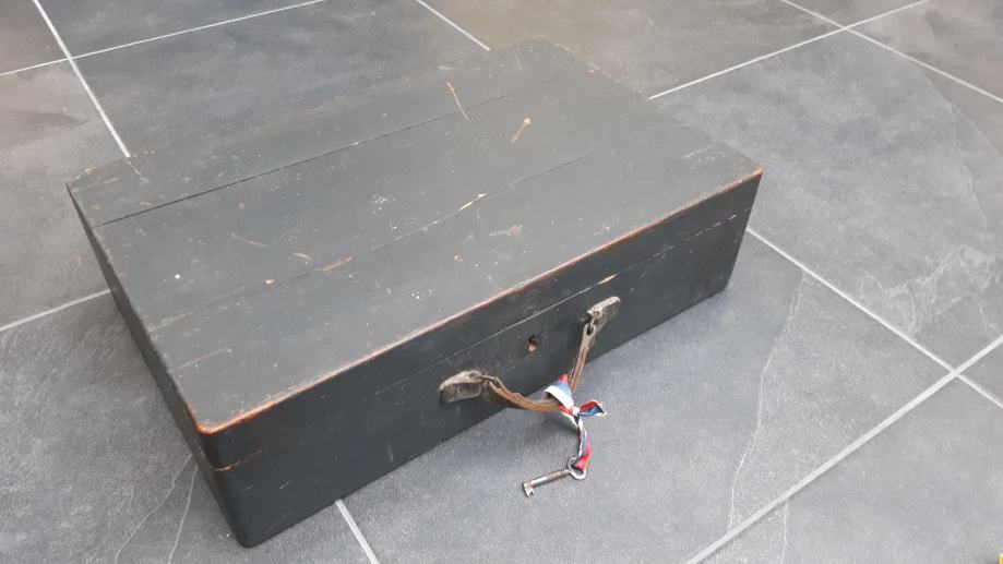 Prodam vintage lesen kovček,izdelan leta 1953.Dimenzije:60×38×17 cm,z delujočo ključavnico.Pošljem po ceniku Pošte Slovenije.