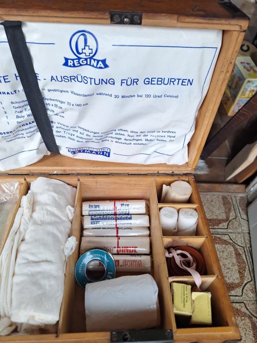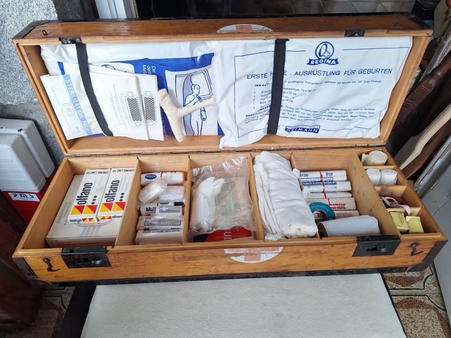 Stari zaboj za prvo pomoč...v kompletu...dim 60x21x16cm