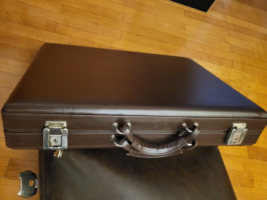 Prodam nov retro, rjav poslovni kovček iz umetnega usnja.