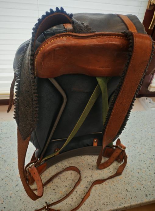Odlični ohranjen ruzak prodam. Ima močno in dobro podloženo oporo za hrbet in odlično ohranjene usnjene trakove. Blago je močno in dobro ohranjeno.