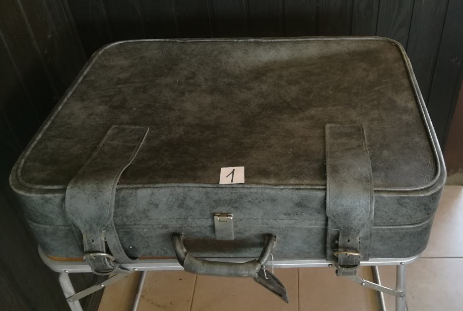 1. Usnjen kovček temno sive barve.