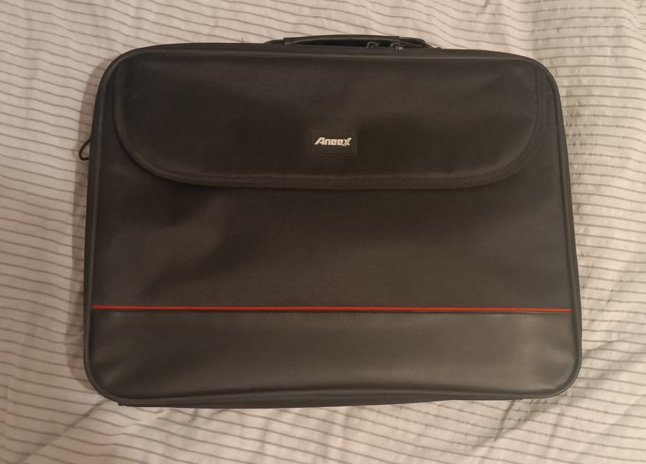 Aneex torba za prenosni računalnik z enim notranjim in enim zunanjim žepom. Ima tudi snemljivo in nastavljivo naramnico. Dimenzije torbe so pribl. 26 x 36 oz. velikost primerna za 15 palični računalnik