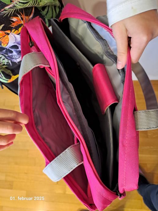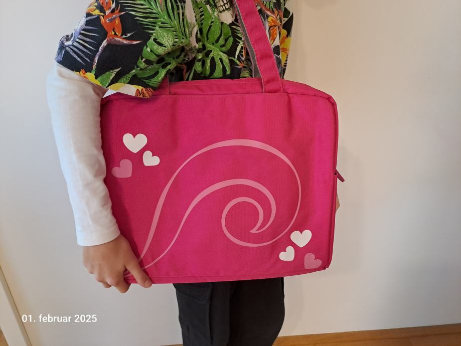 Prodam novo, nikdar rabljeno, torbo za prenosnik Talking Angela. Torbi je priložen tudi daljši pas za nošenje čez ramo. V roza in črni barvi