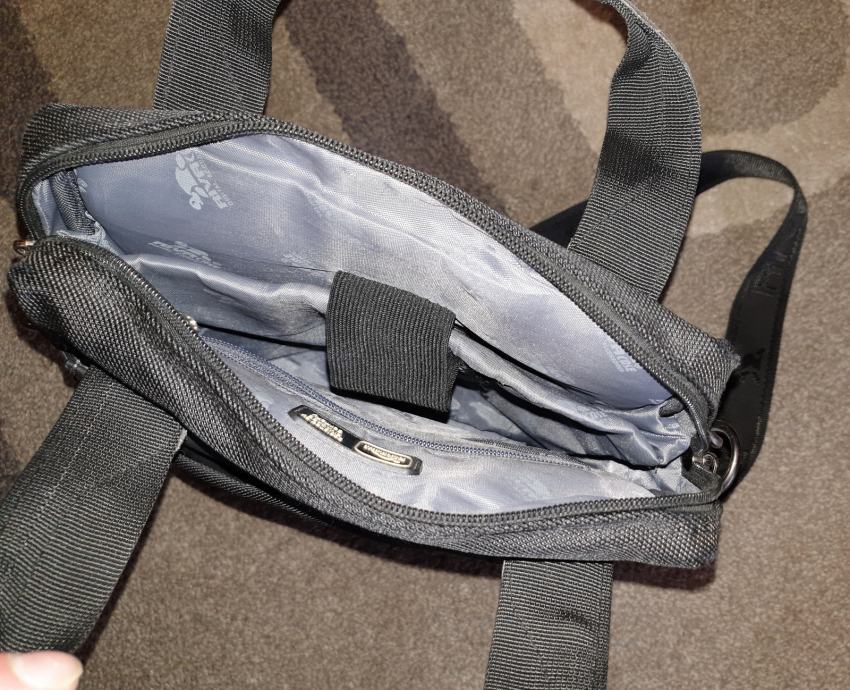 Prodam rabljeno, nepoškodovano, čisto in popolnoma funkcionalno torbo primerno za prenos tabličnih računalnikov ali prenosnikov manjšihi dimenzij. Torba je temno sive barve, ima debele zaščitne stene in veliko dodatnih predalov za pritikline.