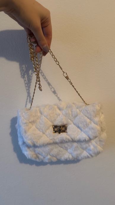 Prodajam novo, elegantno belo torbico, ki še ni bila uporabljena. Torbica ima mehko, prešito teksturo in je izdelana v prijetnem belem odtenku. Opremljena je s kovinsko verižico, ki omogoča nošenje čez ramo ali na roki. Spredaj ima manjšo kovinsko zaponko za zapiranje. Zaradi svoje velikosti je primerna za večerne izhode ali posebne priložnosti, ko potrebujete le najnujnejše stvari. Elegantna oblika in nevtralna barva omogočata kombiniranje z različnimi oblačili in stili.