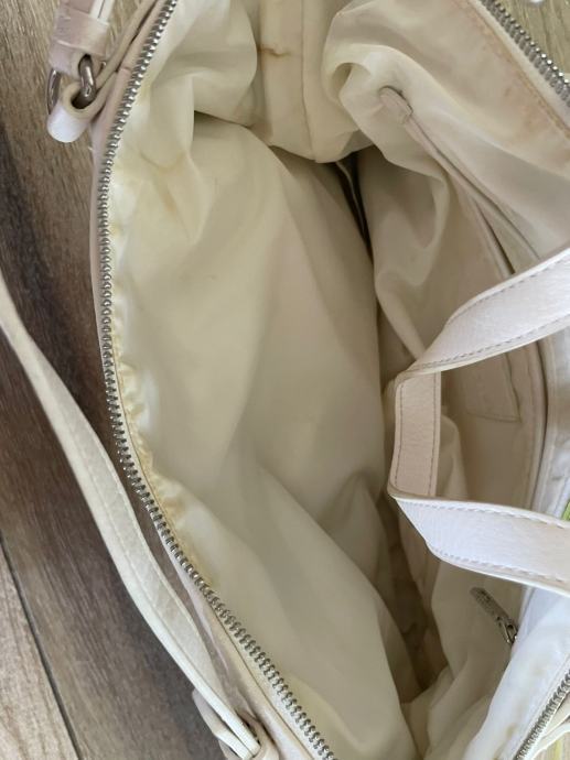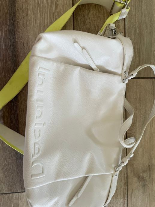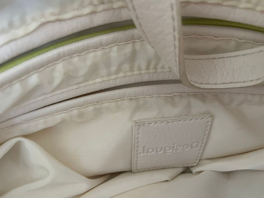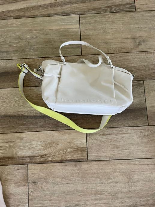Odlično ohranjena Desigual torbica, bele barve. več dodatnih pasov, daljši krajši, lahko prilagajaš katerega boš uporabil. V torbico gre tudi a4 zvezek. pošljem po pošti.