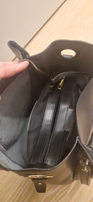 Nova. Ima notranji predal in 2 manjša stranska notranja. Višina 27cm, širina 29 cm, globina 14 cm.