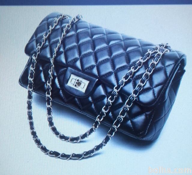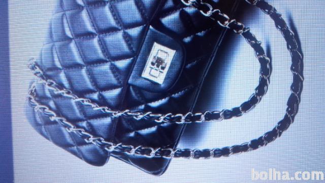 Crna torbica. Nova . Lak in srebrn kovinski pas