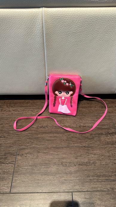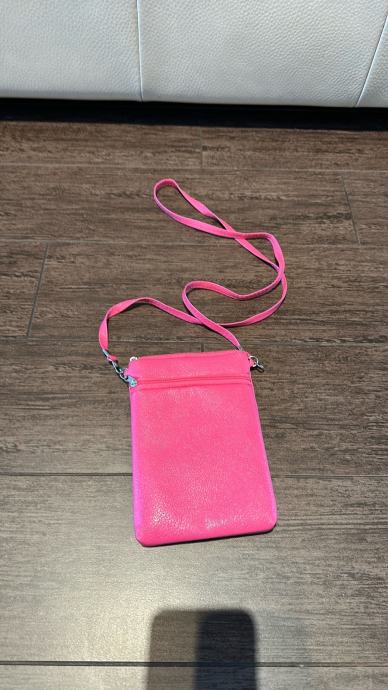 Prodam dekliško torbico roza barve z modnim motivom. Dolg pas za ramena diagonalno. Glavni in stranski žep na zadrgo. Lepa. Nepoškodovana. Mere 13x19 cm. Pas 55cm