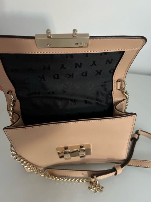 Prodajam lepo ohranjeno DKNY torbico bež barve z zlatimi kovinskimi dodatki. Priložen je tudi dust bag.