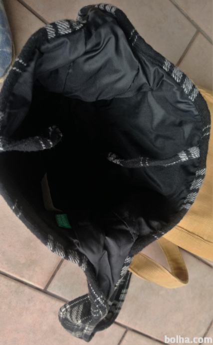 - Črno bela karo torba, znamke Benetton. Ima en predal in je podložena. Velikost 20 x 20 x 6 cm, dolžina pasu 93 cm.