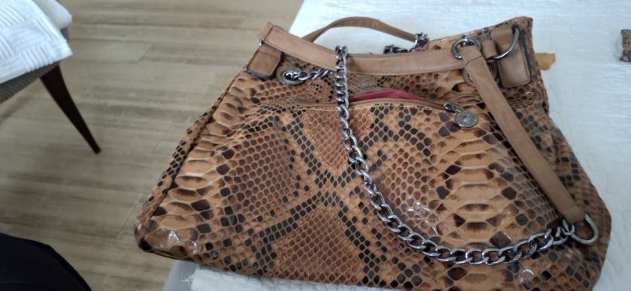 Dodan še pas za nošenje torbice čez ramo. Zelo malo nošena, nepoškodovana. Tako da imate ob nakupu ene torbice-dve -30 eur,torbica Coccinelle črne barve 50 eur, obojestranska torbica Guess 45 eur, krem torbica z dodano torbico, ki jo lahko nosite tudi posamezno, nova 25 eur, torbica rjava z vzorcem pitona, večja, nova 25 eur.