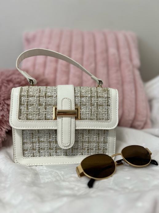 Elegantna bela torbica je torbica za vsak dan ali vsako noč. Primerna je za v mesto, k suknjiču ali zvečer k obleki. Je dobrega materiala in paše k zlatemu nakitu.