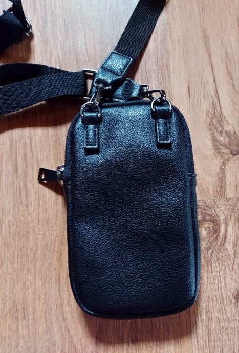 GLUXKLEE MAJHNA ČRNA TORBICA / DENARNICA / ETUI ZA MOBI, CROSSBODY / ZA ČEZ RAMO, UMETNO USNJE + UMETNO KRZNO, NASTAVLJIV PAS, 2 PREDALA + ŽEPEK.