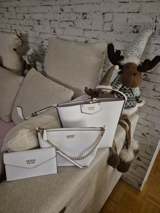 Prodajam novo belo GUESS torbico. Eleganten in prefinjen dizajn znamke GUESS naredi to torbico popoln modni dodatek za vsako priložnost. Dimenzije na voljo pod slikami.