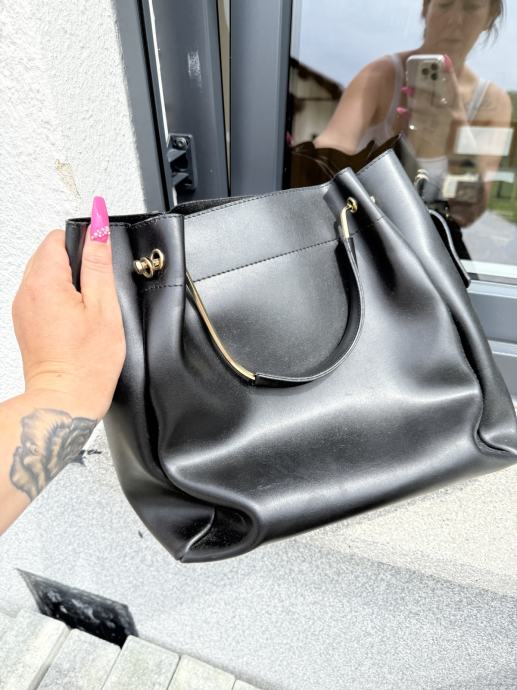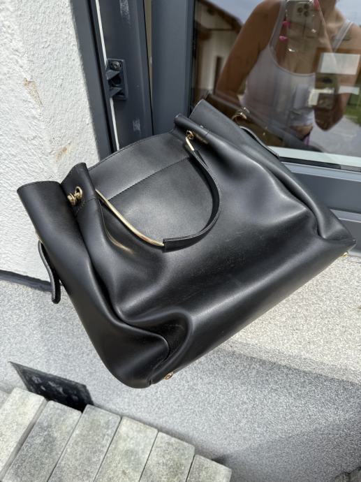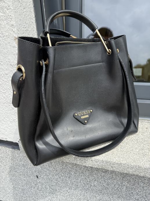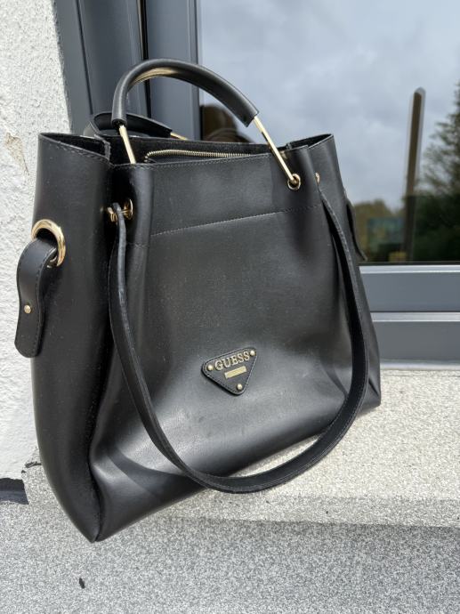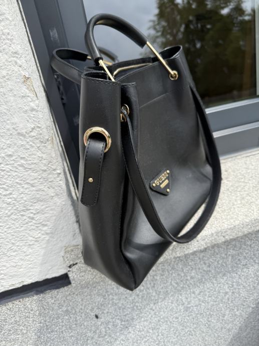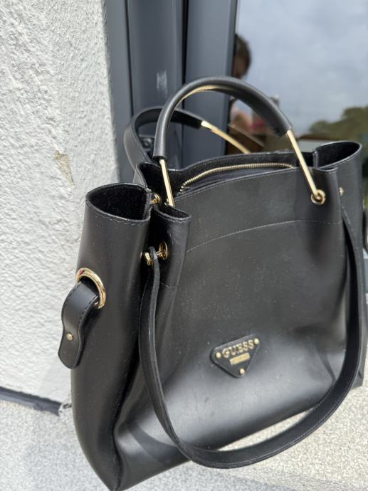 Prodam nikoli uporabljeno Guess torbico z zlatimi detajli.
