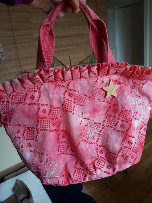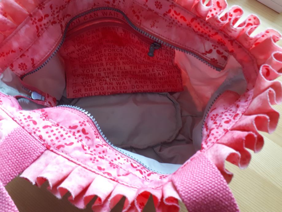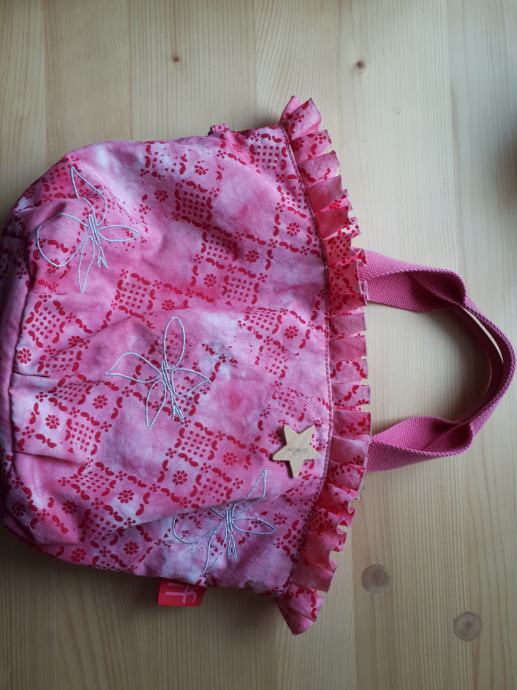 Naprodaj torbica v obliki cekarčka, roza, morda za male dame, brez obeska opice, simbola Kipling (na zadnji sliki rinka, kamor se eventuelno zapne kakšen drug obesek)