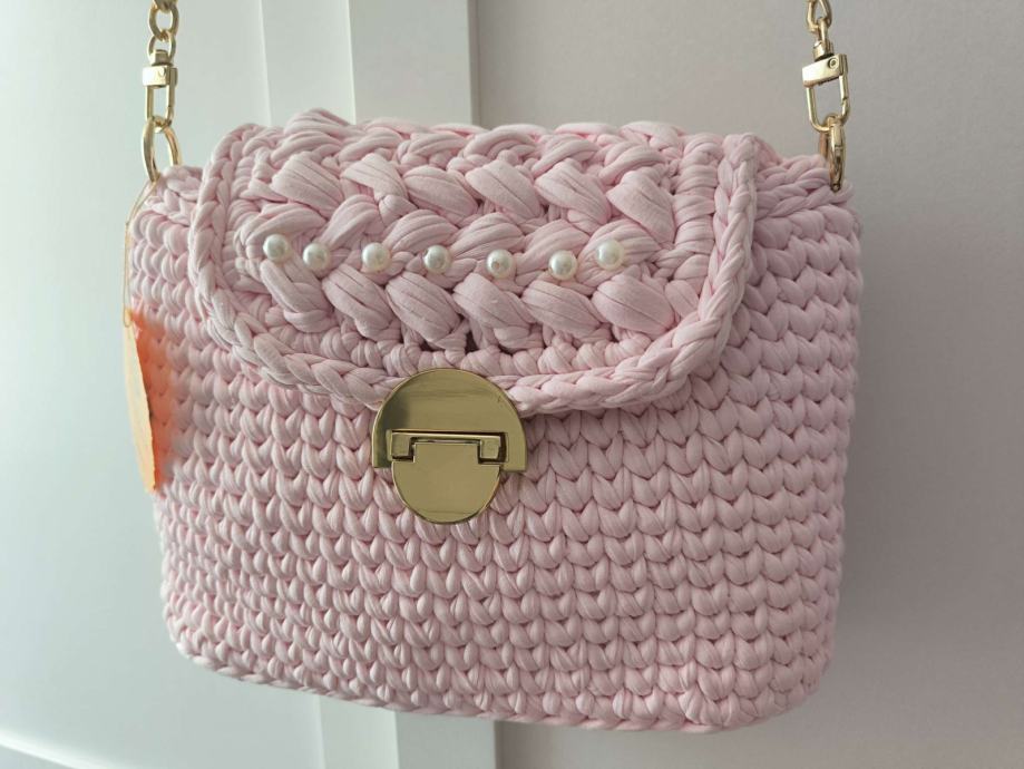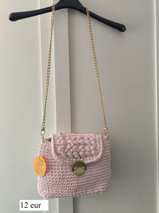 Zaradi neuporabe prodam roza kvačkano torbico, ročno delo slovenske izdelovalke, še z etiketo, mere 25 cm x 20 cm, cena 12 eur.