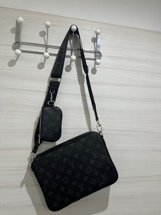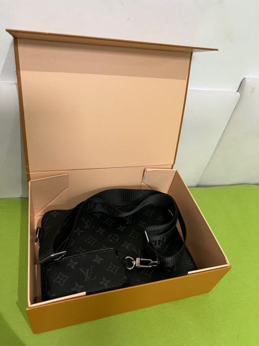 Prodajam rabljeno Louis Vuitton torbico v črni barvi z značilnim monogram vzorcem. Torbica ima nastavljiv pašček in prihaja v originalni škatli. Odlično ohranjena in primerna za različne priložnosti.