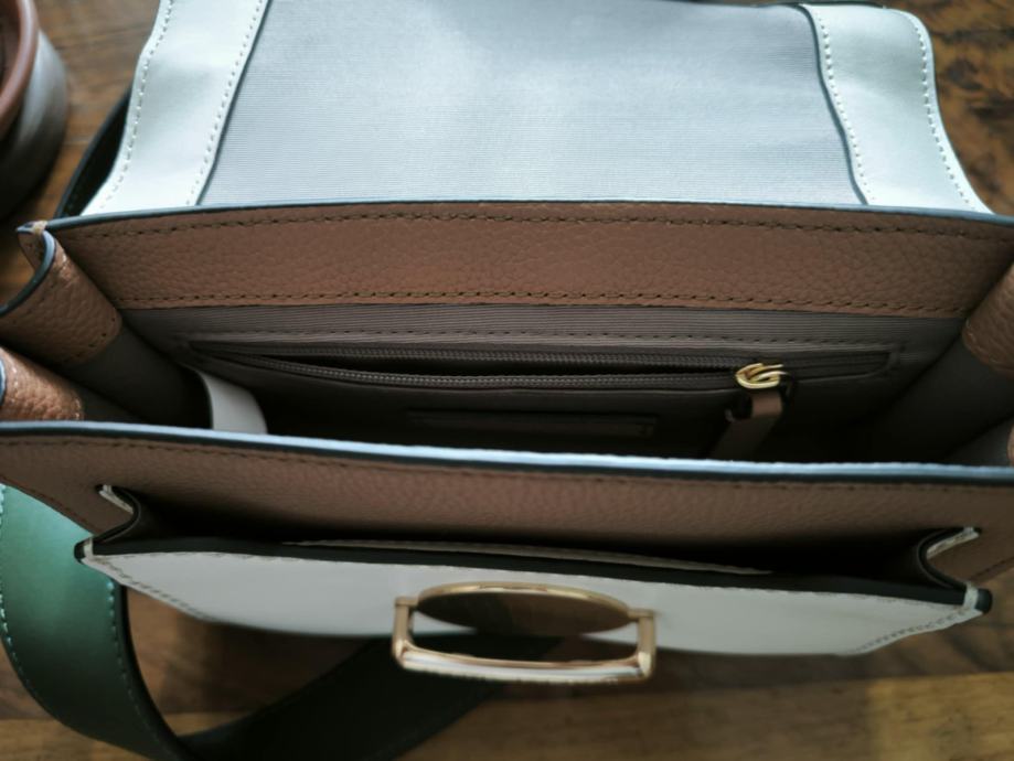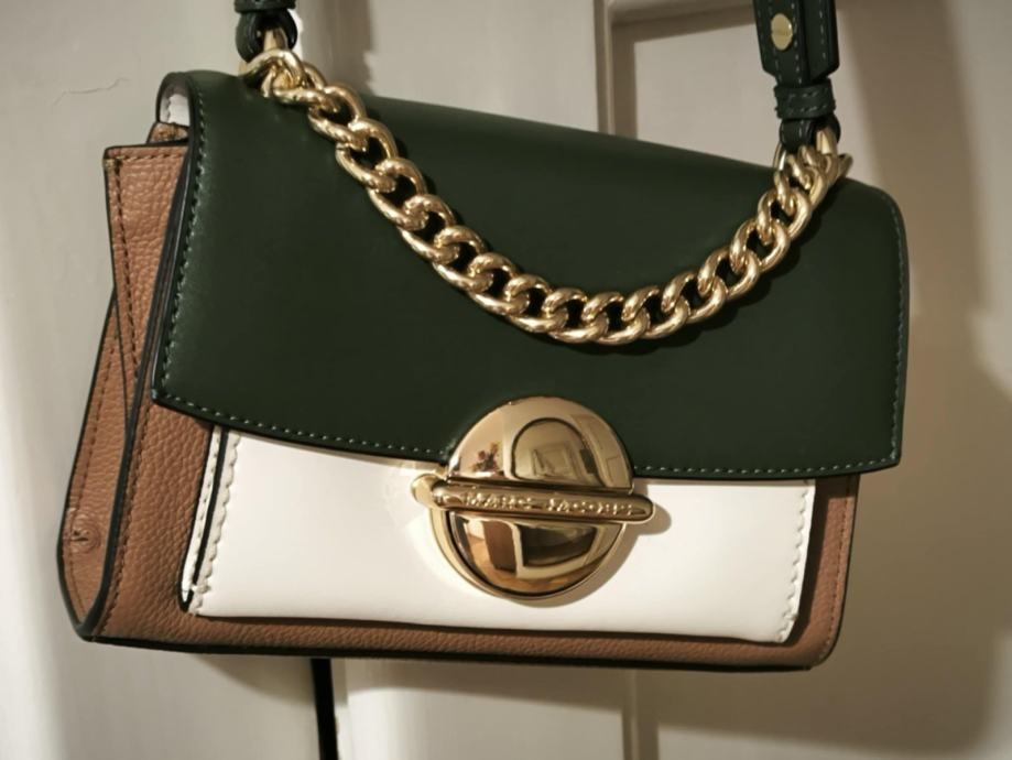 Prodam MARC JACOBS nerabljeno usnjeno žensko torbico za čez ramo, kombinacija v treh barvah, zelena, rjava, beige.