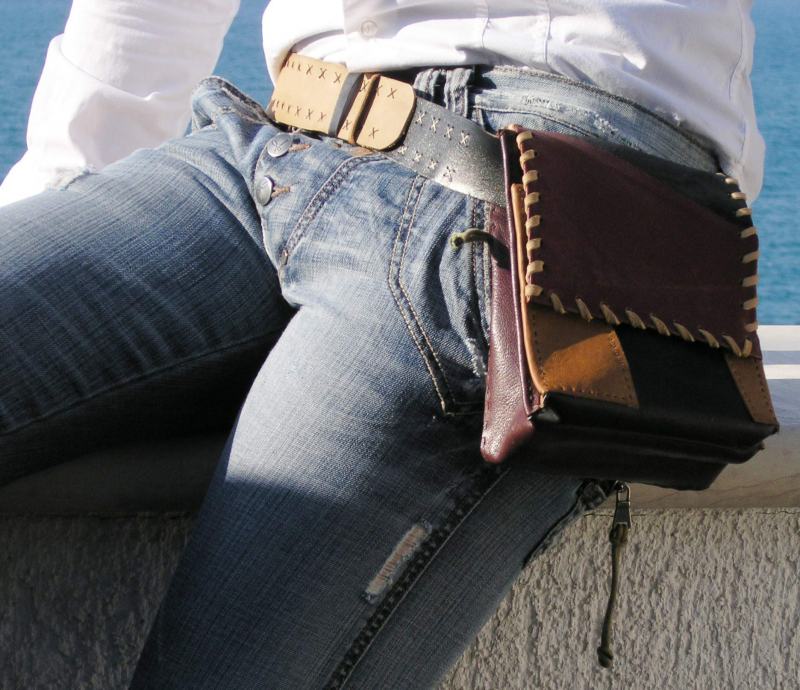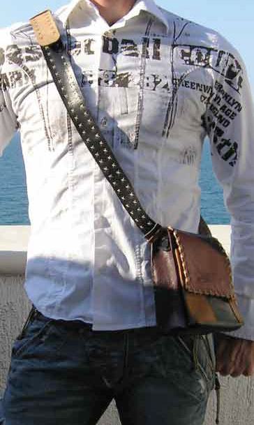 Unikatni usnjeni marsupio dva v enemu. Nosi se ga lahko ob pasu ali na ramenu odvisno od želje. tel. 041590613 Vitja