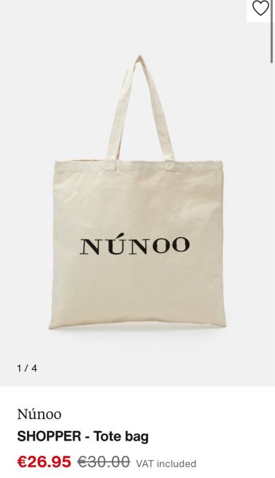 Malo nošena Núnoo torba iz trpežnega materiala, na eni strani piše Núnoo, na drugi recycled, MPC 30eur.