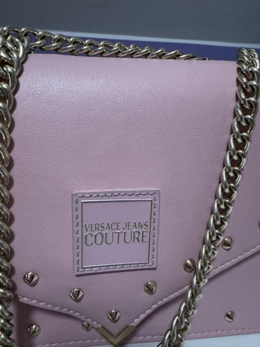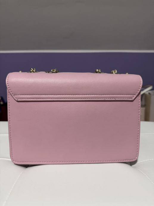 Prostorna, odlično ohranjena, originalna Versace Jeans torbica za čez ramo v roza barvi in zlatimi dodatki.