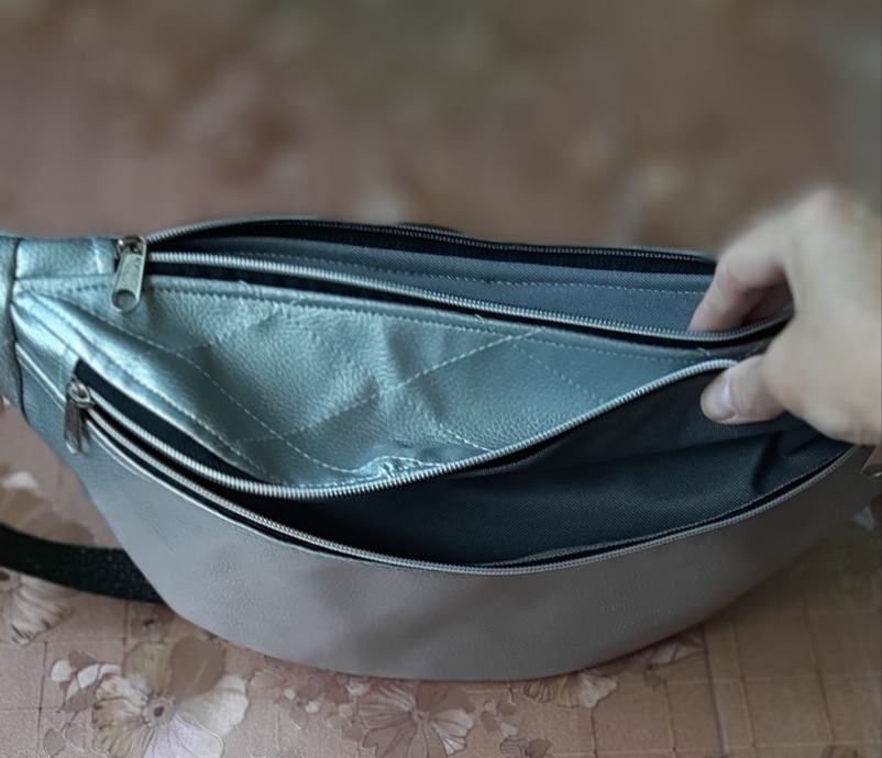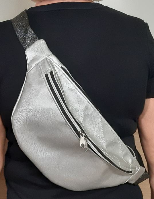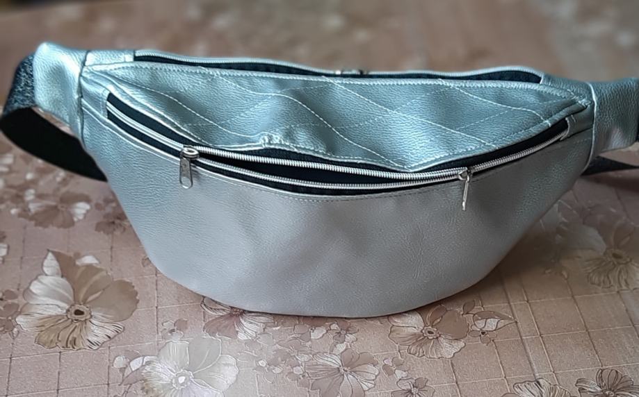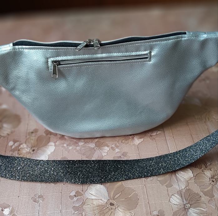 Prodam ne nošeno srebrno pasno torbico. Narejena je iz umetnega usnja in podložena z nepremočljivim blagom. Za dovolj prostora poskrbijo trije žepi z zadrgo. Cena 44€. Kontakt na tel.št.051 331 350