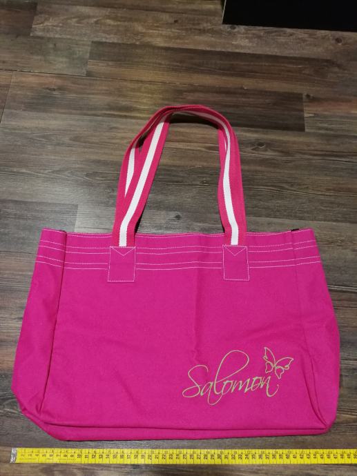 Prodam roza platneno torbo, velikost 50x30cm, dno 14cm, udobni široki ročaji, zapiranje na ježka, manjši notranji žep.