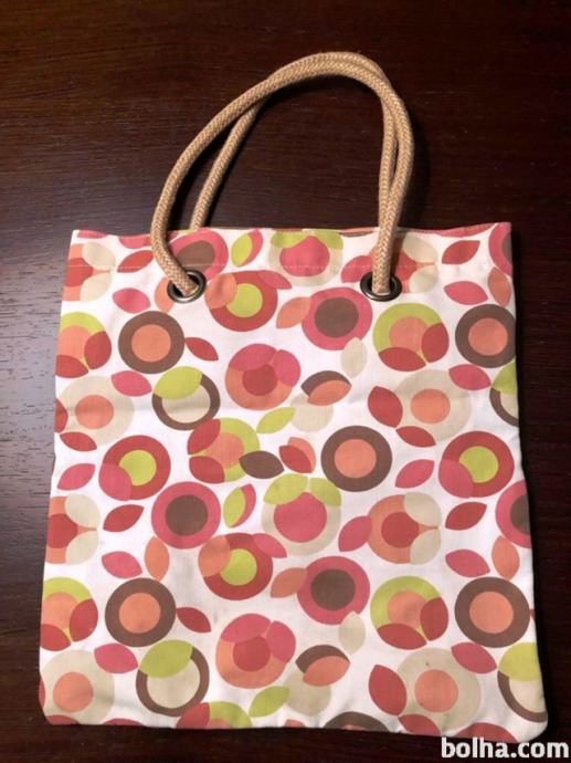 Prodam ohranjeno podloženo, platneno torbico z notranjim žepom na zadrgo. Dimenzija torbe je 34x 35 cm.