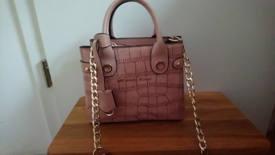 Prodam manjšo torbico MICHAEL KORS, puder - roza barve. Dimenzije so; dolž: 23 cm, viš.; 20 cm, širina: 11 cm.