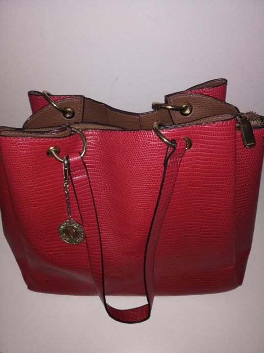 Prodam rdečo torbico z dvemi ročaji za nošenje, ima tri prekate, srednji se zapne z zadrgo, širina je 33cm,višina je 30cm,globina je 15cm. Kot nova. Cena je 17e. Tel: 070 670 720