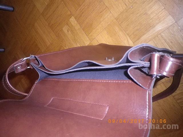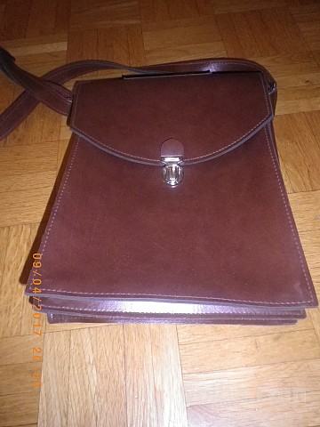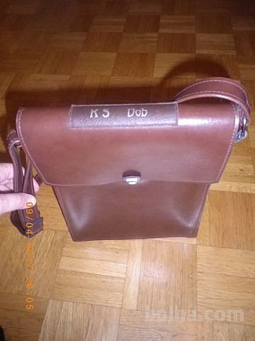 Torbica s pasom, ki se lahko regulira je dimenzij 30 cm dolžine in 22 cm širine. Globina je kakšnih 6 cm, se pa lahko še malo poljubno raztegne, saj je cela iz usnja. Usnje je tisto kakovostno, kot ga danes skoraj ne najdemo več. Nikjer ni poškodovana, odlično je ohranjena. Na njej je našitek z oznako KS Dob, ki se lahko prekrije z rjavim ali črnim tušem, če bi koga slučajno motil. Zadeva je redka, saj gre za ciljno izdelavo za določen namen in ni bila v množični prodaji.